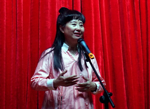 校领导刘晓东、魏立平、王万山与2000余名师生代表一起观看了两场演出。刘晓东、魏立平亲切会见了该剧总导演、我校客座教授、北京外国语大学艺术研究院院长孙萍女士。刘晓东校长对孙萍女士把九江选为《杜丽娘与朱丽叶》全国巡演的首站,把高雅艺术带入九江学院表示衷心的感谢。王万山副校长在演出开始前致辞。孙萍女士向观众介绍了“跨界戏剧”的有关知识。