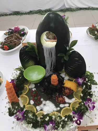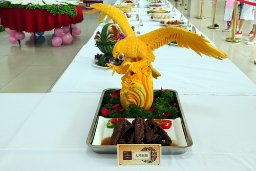 本届美食文化节10家学生食堂逐一集中亮相,美食展台上,惟妙惟肖、栩栩如生的泡沫雕孔雀迎宾、瓜雕、糖艺、面塑的艺术雕刻让师生们叹为观止,流连忘返。一食堂“翠竹报春”、二食堂“锦上添彩”,三食堂“瀑布流云”,五食堂“孔雀迎宾”,教工餐厅的“甜品庄园”,艺苑餐厅的“锦绣山河”,浔东食堂的“展翅高飞”等艺术主题把展台装扮的绚丽多彩。川流不息的人群尽显师生对美食的热爱和对此次活动的期待,在这场美食与文化的盛宴中,大家乐此不疲,欢声笑语,不时驻足观看、拍摄,或是品尝各校区厨师们的精彩杰作,并为他们投上宝贵的一票。另外,本届美食文化节现场还新增加了首届厨神争霸赛、教工红白案厨艺培训、学生现场食品制作体验互动环节,包括包饺子、做蛋糕等,使师生走进后勤、互动饮食、目睹和参与了各种美食的制作过程,成为一道亮丽的风景线。