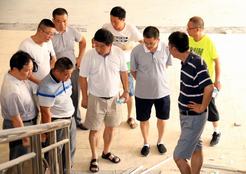 针对三食堂升级改造工程任务重、工期紧等实际情况,夏副校长提出三点要求:一是加强工程建设组织领导,后勤管理处要充分调动各方面力量,其他部门积极做好协调工作;二是加强现场施工科学管理,各工序高效调度配合,确保工程质量和工程进度;三是切实做好安全生产工作,同时做好伏天施工人员和管理人员的防暑降温工作,确保施工安全。