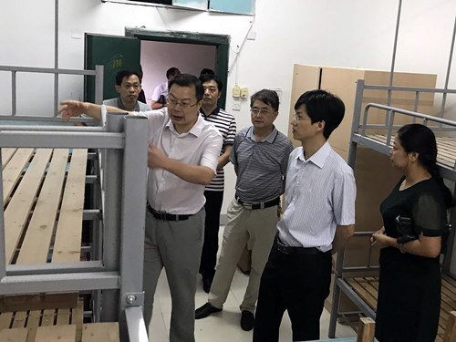 9月1日上午,查振华副校长在学生处、保卫处、宿管中心负责人等的陪同下先后到浔东和八里湖校区检查指导工作。浔东校区管理办、八里湖校区管理办、体育学院、政法学院领导陪同检查。