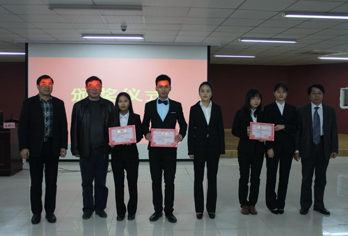 赛后,进行了本届抗辩赛的颁奖仪式,各位领导和嘉宾分别为获奖代表队和获奖辩手进行颁奖并合影留念。