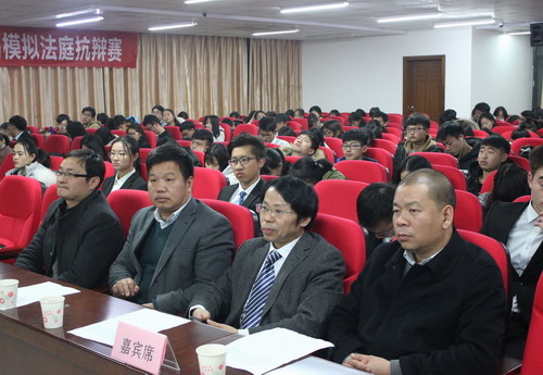 12月4日晚,抗辩赛决赛在八里湖校区综合楼模拟法庭开赛,副校长陈春生到场观摩指导。九江学院兼职教授、九江市人民检察院公诉处刘士豪处长,九江市中级人民法院刑事审判庭蔡报刚庭长、九江市濂溪区人民法院刑事审判庭彭宝池庭长、九江学院政法学院宛锦春副院长、九江学院政法学院刑法教研室副主任石浩旭博士等5位专家应邀担任本场比赛评委。政法学院院长詹建志、副院长曹钟安出席了本次活动。