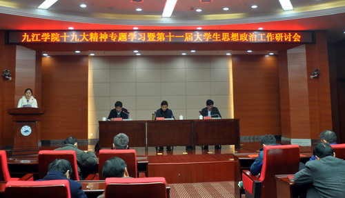 为深入贯彻落实党的十九大精神及全国、全省高校思想政治工作会议精神,以习近平新时代中国特色社会主义思想为指导,研究高校思想政治教育工作的新趋势,进一步加强和改进我校大学生思想政治教育工作,切实提高我校思想政治教育工作的水平,12月22日,学校召开九江学院十九大精神专题学习暨第十一届大学生思想政治工作研讨会。