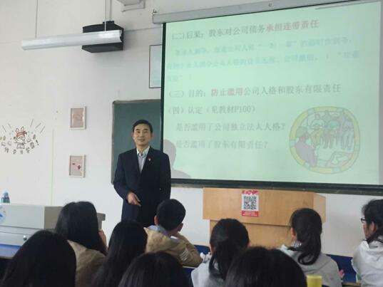 汪老师结合相关法条与案例,并通过师生互动,生动、详实地讲述了“公司法人格否认与股东的有限责任”等课程内容。课堂上,魏立平副书记与同学们一同认真听讲,并细心观察学生的表现,不时地做着笔记。