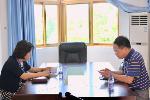 14:50—15:30,李利英教授在行政楼与陈春生副校长进行了深度访谈,就学校建设、管理工作等方面进行了详细交流。