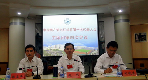 中国共产党九江学院第一次代表大会主席团第四次会议于7月16日上午10:30在行政楼一号会议室召开,赵伟主持会议。主席团成员、各代表团团长、大会各工作组负责人及有关工作人员参加了会议。
