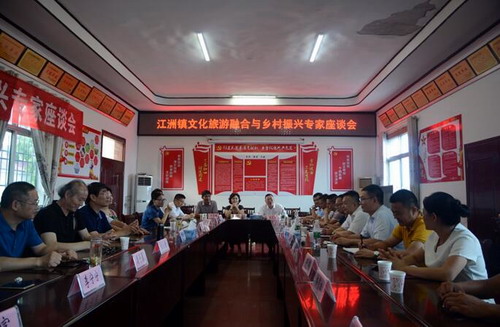 座谈会上,柴桑区政协副主席王宏松致欢迎词。江洲镇党委书记陈世超汇报了江洲基本情况与未来发展打算设想。与会专家结合自己的专业特长和研究方向,对江洲的悠久文化历史、人文自然景观、自然资源优势、岛洲湿地自然生态保护等开展研讨,描绘了认识江州资源和优势的多种视角,诊断了江洲的发展瓶颈和制约因素,提供了可供借鉴的国内外文化旅游融合和乡村振兴的成功经验,提出了江洲作为长江第三大岛、具有“鸡鸣三省”的独特地理区位优势的发展思路。重新审视江洲乡村价值,充分发挥生态涵养、休闲观光、文化体验等功能,推进江洲文化、旅游、商贸、康养、农业等产业深度融合。建议江洲文化旅游融合与乡村振兴要加强上位对接,将江洲发展与长江经济带、最美长江岸线等国家战略融合,将田园风光与湿地景观融为一体,围绕文化与旅游融合做文章,打造田园综合体和具有特色、主题鲜明的旅游系列项目。专家们还就文化旅游融合与乡村振兴中的人才问题、产业定位问题、金融问题等与镇村干部们进行了探讨,并提供了解决思路和方案。