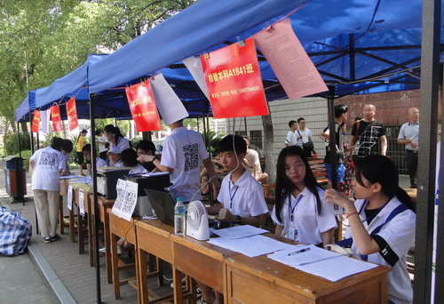 “高效、热情、服务、周到”的迎新工作 令新生及其家长感到方便和温暖,我们看到的是一张张略带倦意的脸庞以及倦意背后舒心的笑容。“我们一下车,就看到了咱们学校接站的牌子,受到热情的接待,从办理报到手续到找到学生宿舍,都是一位同学帮着给办好的,真是太方便了,服务真是太周到了!”一位从贵州过来的学生家长如是说。在报到现场,记者时刻都能看到师生们忙碌的身影,他们帮贫困学生咨询,给新生指路,帮助提行李,一次次奔波在报名点和学生公寓楼之间,尽管汗流浃背,但他们的脸上始终充满着灿烂的笑容。