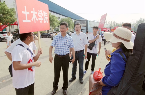 学校党政领导对迎新工作高度重视。校党委书记赵伟、校长刘晓东对今年迎新工作提出了明确而具体的要求。学校专门召开迎新工作专题会,对迎新工作进行布置安排。相关部门各司其职、互相配合,提前做好新生宿舍的整修,维护好迎新信息系统,加强校园秩序管理和安全巡逻,加强后勤饮食保障,确保了迎新工作的顺利进行。新生报到第一天,校党委书记赵伟,校长刘晓东,副校长王万山、杨耀防、夏启国、查振华先后来到三个校区迎新报到现场实地检查指导迎新工作、看望新生和家长。他们与新生和家长亲切交谈,祝贺和欢迎新同学们考入九江学院,询问他们有无问题和困难,并勉励同学们入学后努力学习、刻苦钻研、奋发成才。