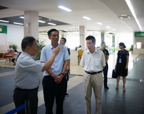 9月6日上午,市全国文明城市创建办公室常务副主任徐琳一行4人来校检查文明创建工作。校党委委员、宣传部长冯健和饮食中心主任蔡飞等陪同检查。