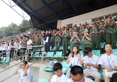 在会操表演中,同学们踏着整齐的步伐,喊着嘹亮的口号,精神抖擞、气宇轩昂的正步走过主席台接受与会领导及武警九江支队领导的检阅。“竞知向学, 厚德笃行”;“努力学习,振兴中华”......这些口号彰显着当代大学生报效祖国的豪情壮志和青春的蓬勃朝气,也展现了当代大学生英姿勃发的精神风貌。