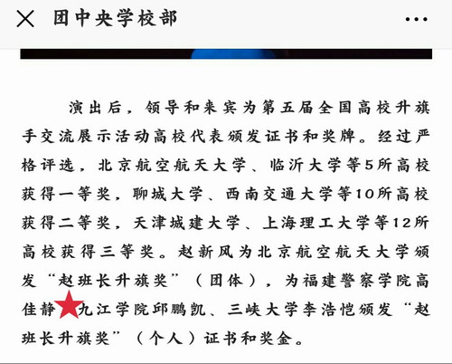 此次是九江学院国旗班继2017年获全国高校活力团支部后又一重大成绩,国旗班将会继续努力,传播国旗文化知识,弘扬爱国主义精神,不忘初心,砥砺前行!