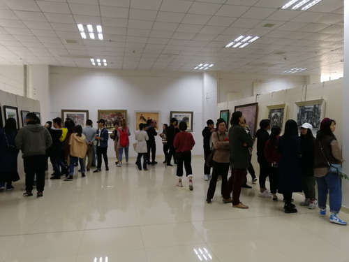 11月4日上午九点,“以美育人,春华秋实”——艺术学院77、78级校友美术作品展在艺术学院艺术大楼一层美术展览大厅隆重开幕。原九江师专77、78级美术系老校友从全国各地赶赴学校参加了活动。九江学院刘晓东校长观看了作品展。陈春生副校长出席开幕式并致辞,九江学院毕业生交流办公室主任丁蓉,艺术学院党政领导、全体老师和美术、绘画、设计专业在校学生参加了开幕式。开幕式由九江学院艺术学院副院长虞斌主持。
