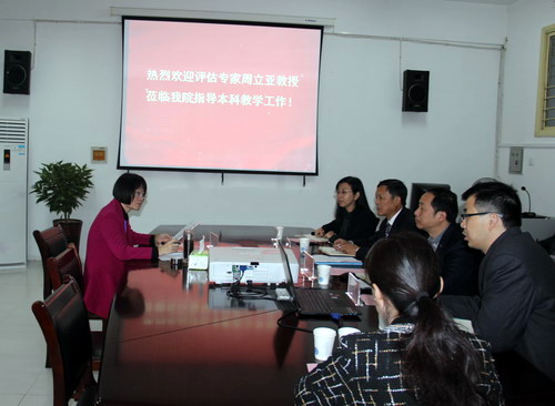 评估专家周立亚教授与后勤管理处和基建处负责人座谈。