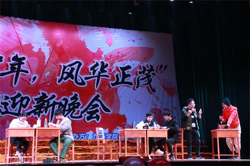 晚会伴随着以纪念改革开放40周年的大合唱《在灿烂阳光下》、《走向复兴》的歌声中拉开帷幕;随后A1711班带来动作优美的舞蹈《寄明月》,现场热情瞬间被点燃;A1741班演绎的搞笑版舞台剧《白雪公主》,让现场观众笑声不断;B1751班男女组合带来的《汉服秀》向观众们展示了“陌上人如玉,君子世无双”的唯美意境;A1731班全体学生朗诵《少年中国说》震撼人心,发出了“少年富则国富,少年强则国强”的呐喊;爱笑会议室的《深夜麻辣烫》蕴含着当今社会存在着选择怀疑而忽略相信的信任危机问题,呼吁大家多多珍惜自己身边的人……压轴表演正是由2018级全体新生助教带来的《助教舞》,为观众们展现助教们在军训场外别样的风采。整场晚会精彩不断,高潮跌起,赢得了台下阵阵掌声,欢呼声一浪高过一浪。