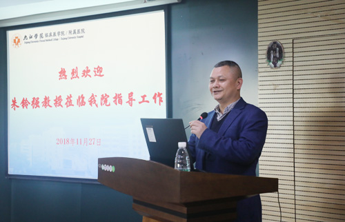 临床医学院/附属医院殷小平副院长代表全院师生对朱铃强教授来院进行学术讲座表示感谢。他说,医院将积极响应学校号召,进一步加强协作,加大科研支持力度,同时期待大家有更多、更新的科研思路和方法,多出成绩,为医院和学校的发展作出贡献。