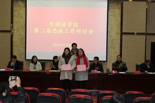 彭晓副书记宣读了外国语学院《关于第二届思政工作研讨会的表彰决定》,校、院领导为获奖的教师颁发荣誉证书。获奖代表赵宋文老师作了交流发言。
