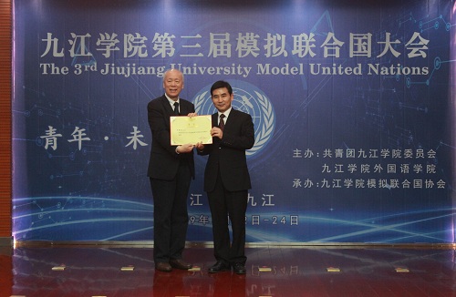 3月22日上午,九江学院模拟联合国协会成立暨第三届模拟联合国大会开幕式在逸夫报告厅举行。校党委副书记魏立平、中国模拟联合国常务理事、资深外交官华黎明大使出席开幕式,本次模联大会以“青年·未来”为主题,有来自华中科技大学、武汉大学、华东交通大学、长沙学院和我校的50名代表参加,学生处、团委、外国语学院负责同志参加了大会。开幕式由校团委副书记任丹阳主持。