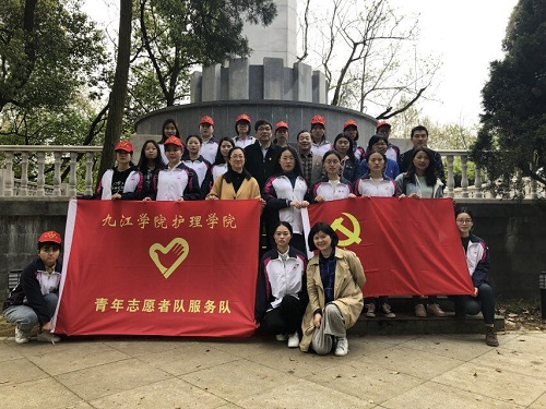“桃花红雨英雄血,碧海丹霞志士心。”4月4日上午,学生处、团委与九江市退役军人事务局、共青团九江市委联合在九江市烈士陵园举行“传承·2019清明祭英烈”特别主题党团日活动,学生处、校团委全体党员、校学生会、学生团员、土建学院学生代表等100余名师生参加活动。仪式由校团委副书记任丹阳主持。