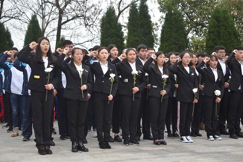 上午9时40分,祭英烈仪式正式开始。在一片肃穆中,国旗班标兵肃立两侧。全体人员齐唱国歌。学生代表恭读祭文,两名礼兵抬着花篮,迈着整齐的礼步缓缓向前,将花篮摆放到纪念碑基座前。团市委书记宋晓妤、副书记周丽敏整理挽联,全体向烈士纪念碑鞠躬默哀。大家神情凝重,深切缅怀为民族独立、人民解放和国家富强、人民幸福做出巨大贡献和牺牲的革命英烈,向历史致敬,向英雄致敬。
