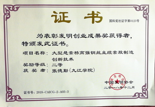 论坛以“新中国成立70周年 科技发展与发明创新”为主题,聚焦国家创新政策、奖励优秀发明家和特别贡献者,挖掘更多发明人才,分享发明理念和创新智慧,激励公众为建设创新型国家和世界科技强国做出新贡献。颁奖典礼上,86个项目获得“发明创业成果奖”。其中“复杂应用环境下短距无线通信系统关键技术、成套装备及应用”获得特等奖;“单晶叶片熔模铸造计算机模拟技术及应用”等43项发明成果获得一等奖;我校与奥盛(九江)新材料有限公司合作的“大型悬索桥高强钢丝主缆索股制造创新技术”等42项发明成果获得二等奖;九江学院与中国科学院、清华大学等9个单位荣获了中国发明创业成果奖伯乐奖。不仅有近百位发明家荣获发明创业奖,论坛还邀请国内外知名学者、发明家、企业家演讲,分享发明历程、交流创新理念。
