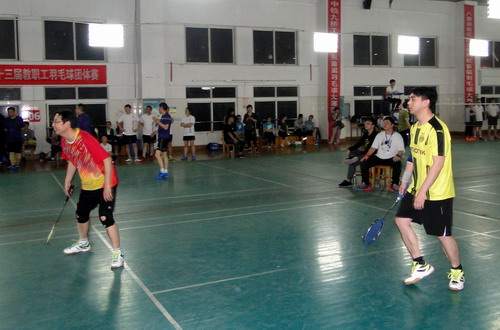 5月9日晚,由校工会主办,体育学院、校学生羽毛球协会协办的校第十四届教职工羽毛球混合团体赛在主校区体育馆羽毛球馆举行,比赛吸引了18支队伍100余人参加。校长刘晓东,副校长夏启国,校纪委书记李广欣参加了比赛。校领导和教职工们携手同行,并肩奋战,在赛场上留下一道道靓丽风景。