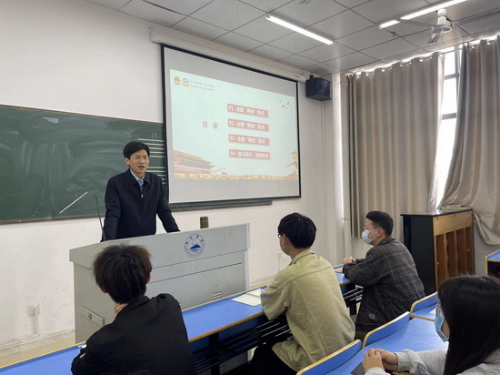 校领导为大学生上思政课 宣讲全国“两会”精神
