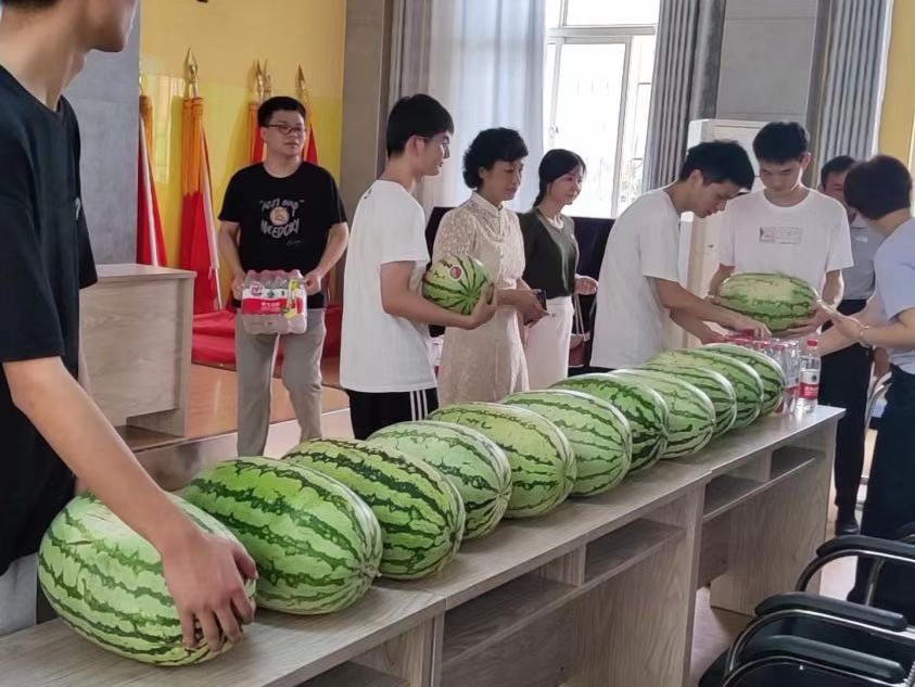 7月17日上午,建工学院院领导带领该院学生科、团委负责人为留校考研学生送去了清热降暑的西瓜、矿泉水,还特意准备了藿香正气胶囊和风油精等夏季常备药品,为复习考研的建工学子加油助力。