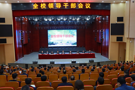 10月26日上午,我校召开全校领导干部会议,传达学习党的二十大精神和省市领导干部会议精神,全面部署学习宣传贯彻各项工作。党委书记赵伟主持并讲话,强调要迅速掀起学习党的二十大精神热潮,切实把思想和行动统一到党的二十大精神上来,奋力书写学校高质量跨越式发展新篇章。党委副书记、校长陈小林传达了党的二十大主要精神。