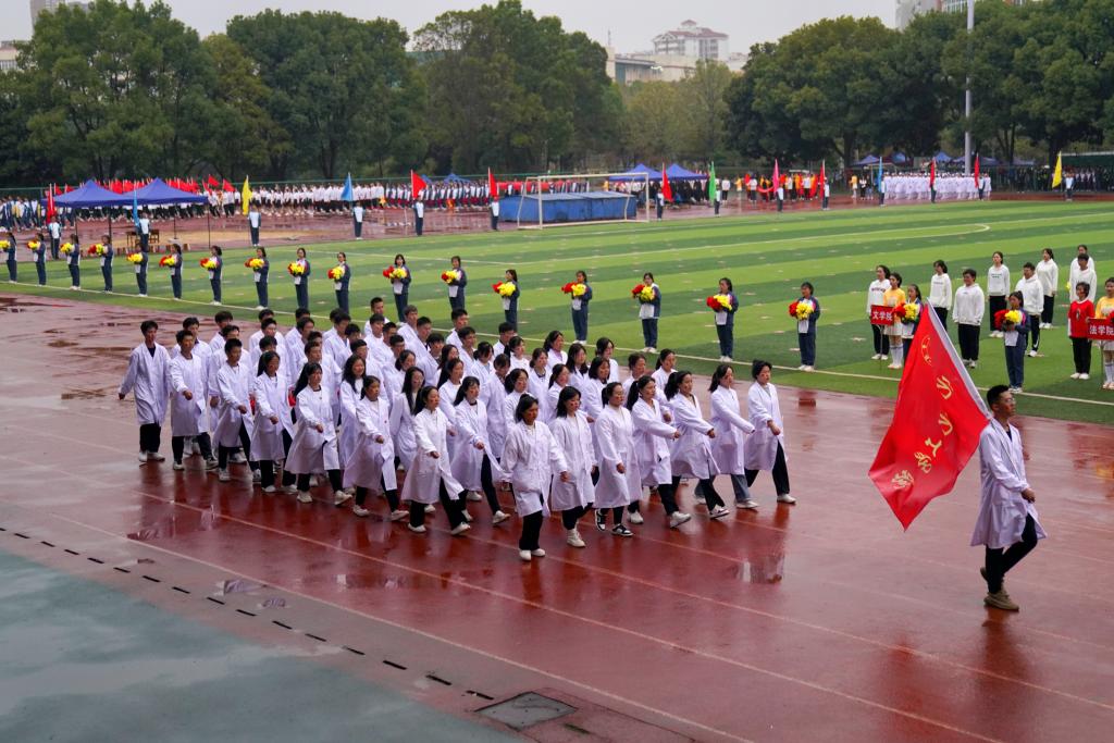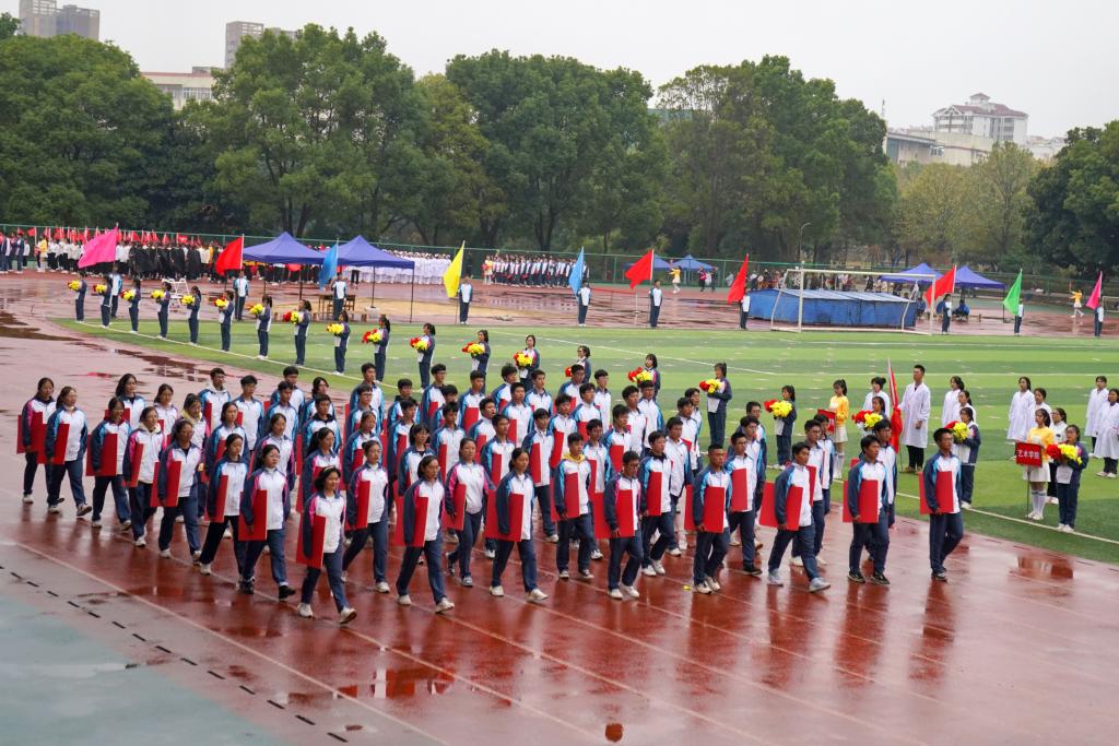 在运动员代表、裁判员代表宣誓后,校党委书记赵伟宣布:九江学院第二十一届运动会开幕!