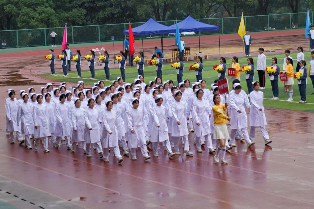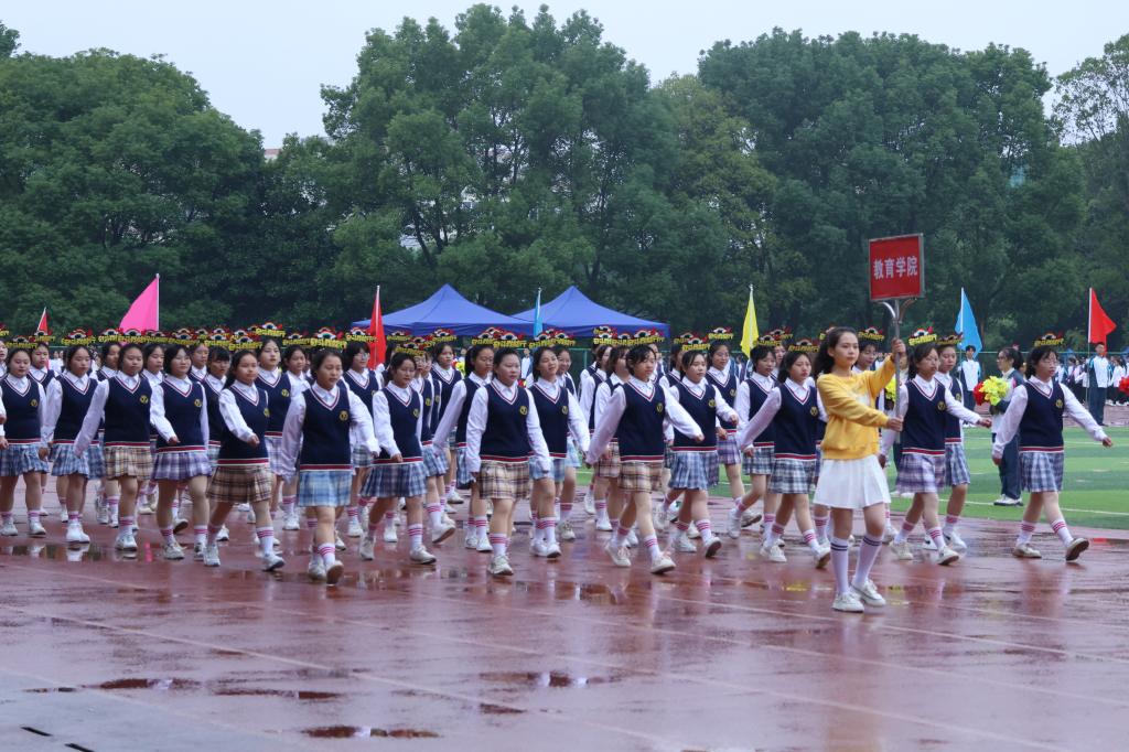 紧接着,鲜花队、彩旗队、裁判员方队和来自各个学院和学校教职工的22个运动员方阵也踏着矫健的步伐依次入场。击鼓表演、汉服舞蹈、纸牌拼字……运动会方阵入场精彩纷呈,各二级学院纷纷结合各自的学院和专业特色,用别出心栽的表演向党的二十大献礼。时尚新潮的音乐、青春曼妙的舞姿、铿锵响亮的口号,让人感受到了青春的活力、创造的激情;昂扬饱满的状态、勃发的英姿和别出心裁的方阵秀让现场的气氛瞬间热烈起来,掌声、欢呼声响彻云霄。