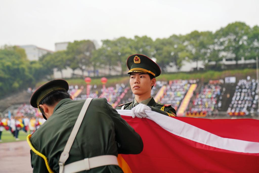 上午8时整,伴随着昂扬振奋的乐曲,我校第二十一届运动会进场仪式正式开始。国旗、校徽、运动会会旗和会徽在仪仗队护卫下率先入场,他们精神饱满、步履铿锵、气宇昂扬,充分展现了我校学子积极向上的精神风貌。