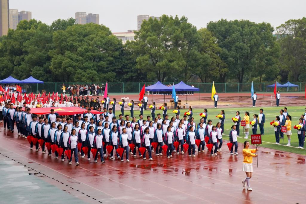 入场仪式结束后,国旗班的同学们迈着矫健整齐的步伐走向升旗台。庄严的国歌声响起,在全体师生的注目礼下,五星红旗冉冉升起,飘扬在学校的上空。