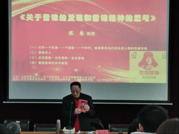3月3日,全国育人楷模、江西省著名德育专家、九江学院关工委“五老成员”陈忠教授,为我校学生和辅导员代表作了题为《关于雷锋的发现和雷锋精神的思考》的专题讲座。