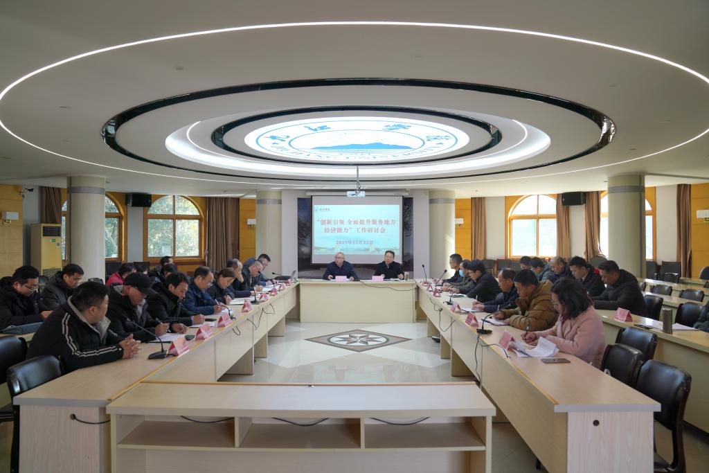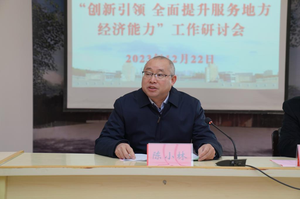 为助力学校应用型转型,融入省市发展战略,积极提升学校服务地方经济能力,12月22日下午,我校在行政楼一号会议室召开“创新引领、全面提升服务地方经济能力”工作研讨会。校长陈小林出席会议并讲话,副校长严平主持会议。