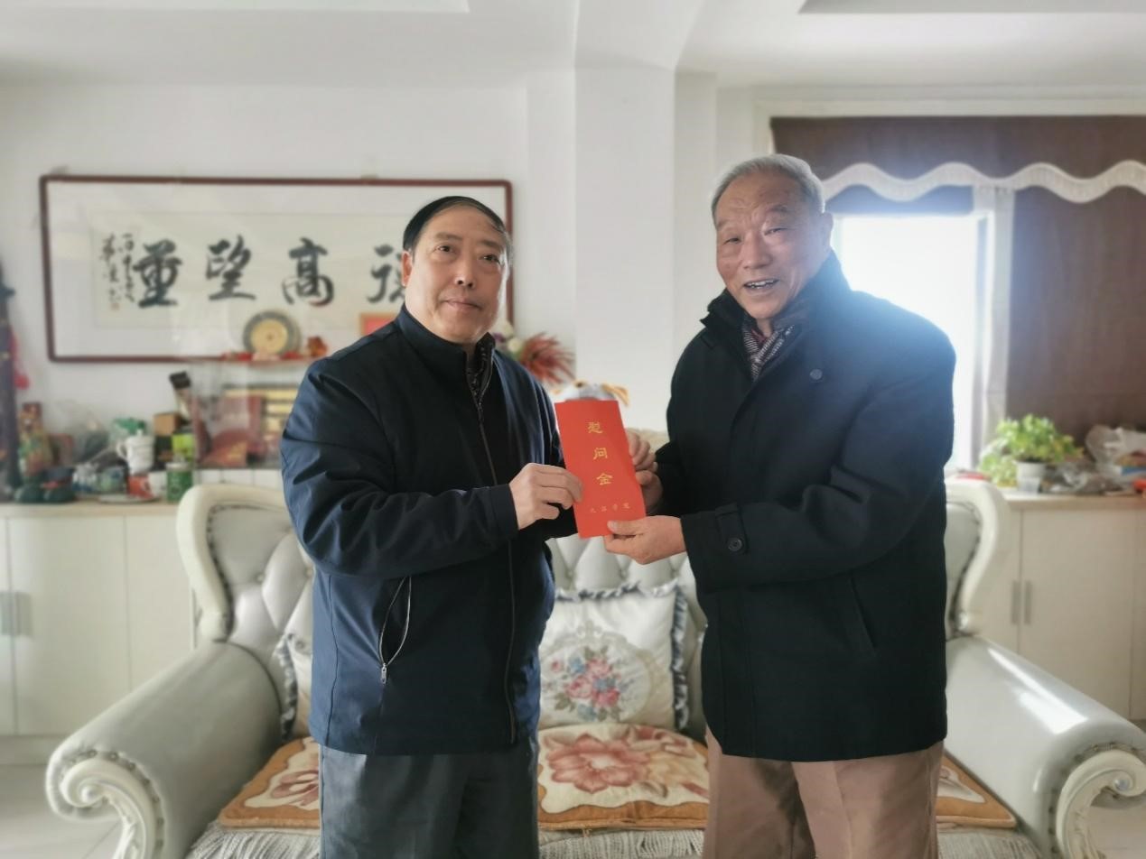受学校党委委托,离退休人员工作处负责人代表学校党委和校行政走访慰问原教育学院退休老领导。