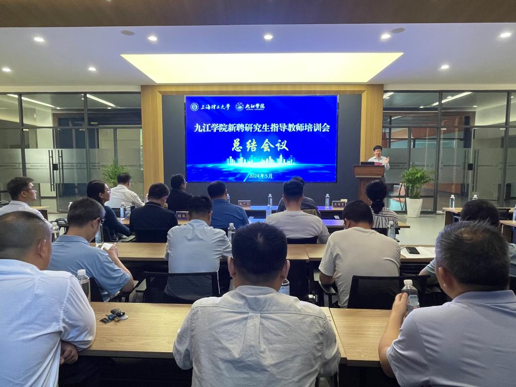 24日上午,新聘研究生指导教师培训会总结会议在科技园一楼召开。王万山出席会议,对新聘研究生导师提出了希望和要求。上海理工大学研究生院副院长郑继红、研究生工作部部长彭宗祥为2024年九江学院新聘研究生指导教师颁发了导师聘书。