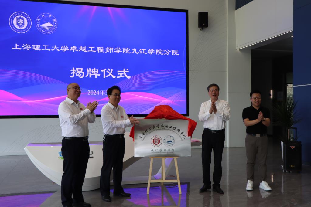盛春与李明斌共同为上海理工大学卓越工程师学院九江学院分院揭牌。