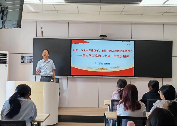 上午8点,校长陈小林走进立信楼404教室为管理学院A2431/32、A2421/22班同学讲授了开学第一课。陈小林深入阐释了党的二十届三中全会的主要内容与精神要义,勉励同学们将大会精神内化于心、外化于行,倍加珍惜美好的大学时光,树立正确的人生信仰,制定好大学生涯目标;学会改变学习方式,学思并重,致知穷理,力学笃行,知行合一,学会借助新工具提升学习效率;秉持“竞知向学,厚德笃行”的校训精神,逐梦九院,成就未来。