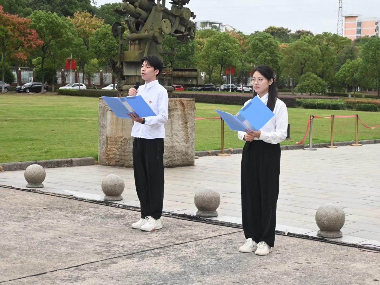 “我们将不负韶华,不负时代,不负人民,为实现中华民族伟大复兴的中国梦而努力奋斗,筑梦新时代,青春勇担当!”九院学子们激昂的青春誓言响彻校园。随后,来自医学院周亚文和杨淑婷表演诗朗诵《今天是你的生日,我的中国》,现场全体师生挥舞着手中的国旗,满怀自豪和喜悦齐唱歌曲《歌唱祖国》,用最嘹亮的歌声表达对祖国的美好祝愿。