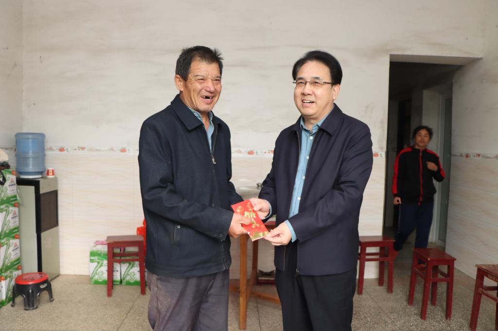 调研期间,李明斌一行深入走访慰问了脱贫户,详细了解脱贫户的家庭构成、身体状况、外出务工、收入和农业发展等情况及存在的困难,鼓励他们要坚定信心,克服困难,在党和政府的关怀下,共同努力改善生活条件,并送去慰问金。