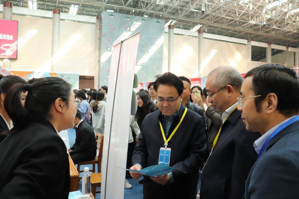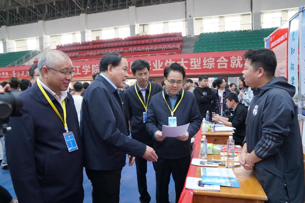 金秋时节,梦想起航。11月2日,青春无限“就”在今秋——九江学院2025届毕业生大型综合就业双选会在九江学院体育训练中心成功举办。党委书记李明斌,校长陈小林,副校长查振华前往招聘会现场,亲切指导并关心毕业生的求职进展。