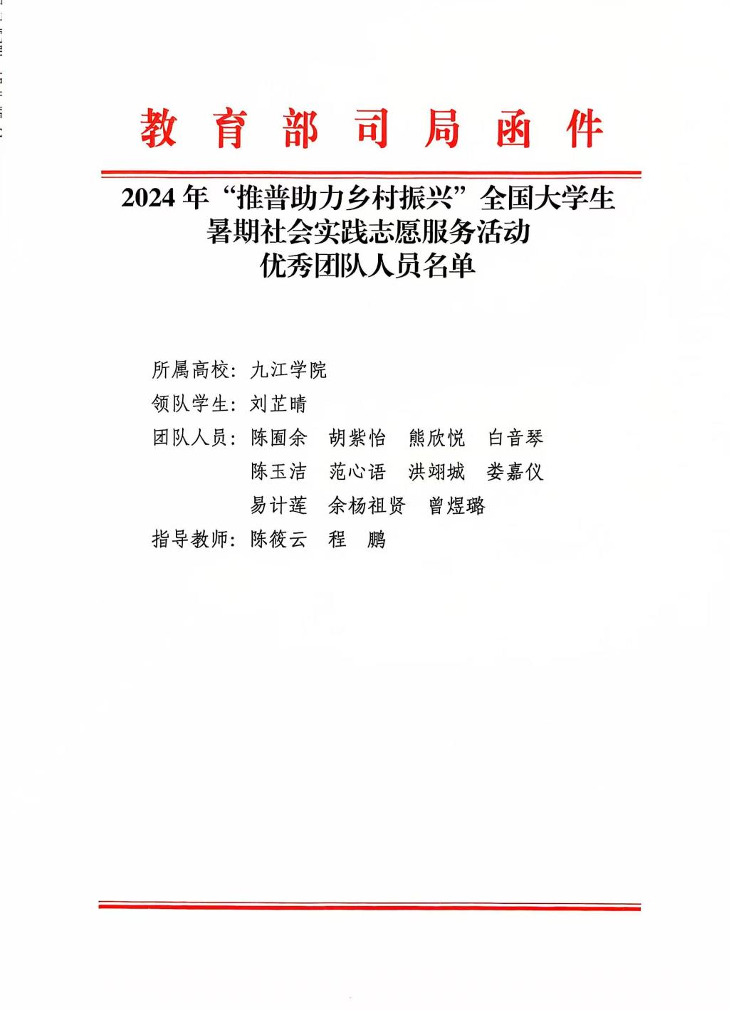 教育部和团中央在表扬信中对九江学院“文小青”团队的优异表现给予高度评价,称赞他们在助力乡村振兴中展现了九院学子的青春担当,并希望学校继续发挥教育主阵地作用,坚定师生理想信念,强化社会实践能力,为国家语言文字事业高质量发展和教育强国建设作出更大贡献。