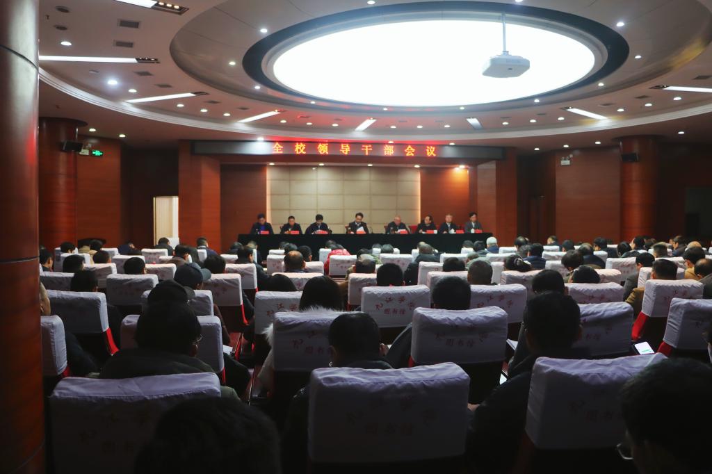 一年春作首,万事行为先。2月15日,新学期第一天,学校在逸夫图书馆报告厅召开全校领导干部会,部署新学期和年度重点工作。校党委书记李明斌出席会议并讲话,强调要深入落实学校第二次党代会精神,奋力完成“十四五”规划目标任务,加快建设特色鲜明高水平应用型大学。党委副书记、校长陈小林总结了寒假工作,部署了新学期开学及年度重点工作。党委委员、副校长查振华主持会议,党委委员、副校长王殿元、李松志、鲁卫东、雷志强、吴维勇,党委委员刘遵海、刘平、杨杰出席会议。