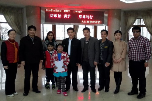 3月18日下午,在校行政楼402办公室,热烈上演着我校外籍教师Raza的女儿Isna拜师学艺的一幕。九江市外专局副局长詹冬龙专门陪同瑞昌剪纸大师朱扑光教授前来九江学院参加收徒仪式。参加仪式的还有国际处的王贤淼副处长、吴滔主任以及外籍教师Raza一家。