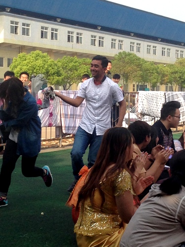 4月16日是柬埔寨新年的最后一天,我校来自柬埔寨的孔子学院奖学金生在北区田径场举行了庆祝活动,国际交流学院全体老师和来自各国的留学生以及中国学生共同庆祝柬新年。