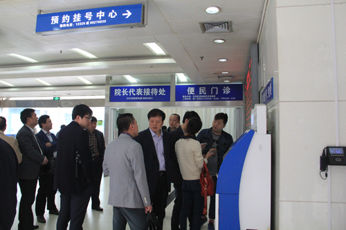 随后,在相关工作人员的带领下,张院长一行实践体验了南大一附院和南大二附院的微信预约挂号就诊服务流程,从细处、实处现场学习兄弟医院的“微服务”工作经验。