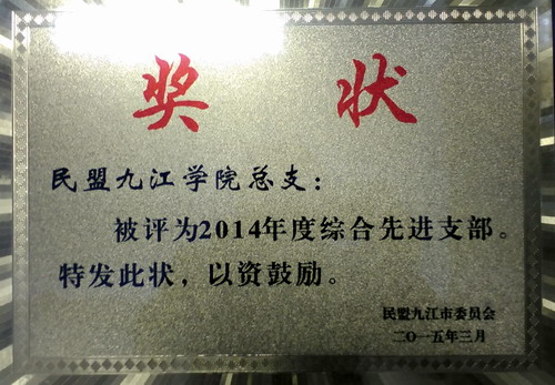 近期,我校民盟总支和部分盟员获得民盟上级组织表彰,民盟九江学院总支获民盟中央“先进基层组织”称号,获民盟九江市委“综合先进支部”称号。总支盟员梅龙宝、彭根来、毛亮清、李定强获盟省委“先进盟员”称号。