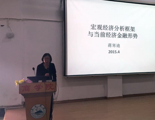为提高同学们对专业知识的认识,开阔眼界,加强对当前国际、国内经济形势的把握,4月22日下午,经管学院在文友楼三楼报告厅举办“宏观经济分析框架与当前经济金融形势”讲座,北京国家会计学院教授,经济学博士蒋寒迪女士应邀而来为经管学子带来了一场精彩的学术报告,经管学院院长潘旭华教授主持并旁听了本次讲座。
