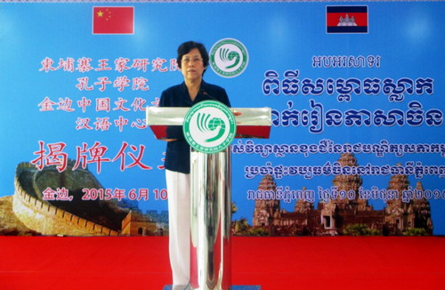 布大使说,“今天,王家研究院孔子学院金边中国文化之家汉语中心正式成立,以汉语教学为主的孔子学院和以中国文化传播为主的文化之家联姻,利用国内外各方资源,面向柬埔寨主流公众和艺术家举办综合性、多形式、多功能汉语教学和文化活动。在柬埔寨文化艺术部的大力支持下,孔子学院和文化之家的合作必将结出中柬人文交流的硕果。”